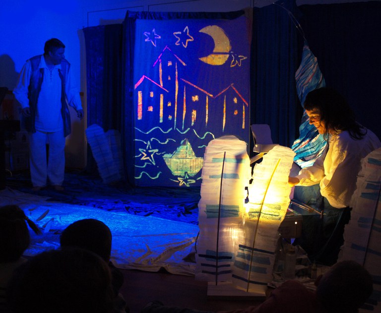 quarel·la desenvolupa petites històries que s’entrellacen a través de l’aigua en un mateix escenari, el mar. Un espectacle visual ple de màgia que juga i experimenta amb els colors, la llum, les ombres, el so i la paraula. La música enregistrada de Pascal Comelade ens acompanya i transporta a aquest món de ritme tranquil ple de canvis i emocionants sorpreses. Aquarel·la és un espectacle molt proper amb una escenografia de colors relaxants i llums càlides. Les ombres es van generant i transformant en directe, pintades amb aquarel·la, sorra, aigua… Fitxa artística Creació i interpretació: Nona Umbert i Xavier Basté Creació, manipulació d’ombres, disseny i construcció d’escenografia: Nona Umbert Música: Pascal Comelade Producció: Fes-t’ho com vulguis Durada: 35 min Tots els adults i infants necessiten comprar entrada.