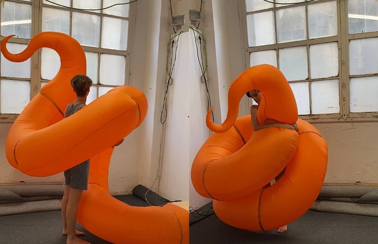 Una obra d’art, un moble versàtil o material per a un taller... Artefacte és totes aquestes coses: un dispositiu mòbil, a mig camí entre la instal·lació artística i la proposta de mediació, dissenyat específicament per acollir projectes creats per artistes. Augmentar el volum, inflar una membrana, omplir-se d’aire... Aquestes són algunes de les reaccions que certs éssers i organismes adopten davant d’un perill o per comunicar alguna cosa. En aquest taller, amb l’artista Anna Irina Russell, ens inspirarem en aquests comportaments per construir unes estructures inflables temporals que es convertiran en extensions de les peces geomètriques de l’Artefacte. Crearem tentacles, cavitats i protuberàncies amb peces de tela que, combinades entre si, ens permetran relacionar-nos amb l’espai des del joc i l’experimentació. Ens posarem a la pell d’organismes més enllà del cos humà per construir un espai comú on ens puguem convertir en un cos col·lectiu. Una proposta artística d’Anna Irina Russell, artista multidisciplinària que fa servir l’escultura, la instal·lació i l’acció per reflexionar sobre processos de comunicació. S’interessa per les tensions entre l’espai, els cossos, els objectes i els materials amb què treballa. Sovint treballa des d’un llenguatge lúdic com a eina per investigar, assenyalar i subvertir certes estructures comunicatives preestablertes que solen passar desapercebudes. Ha exhibit la seva obra en institucions com el MACBA, La Casa Encendida o el CCCB. Edat: públic adult