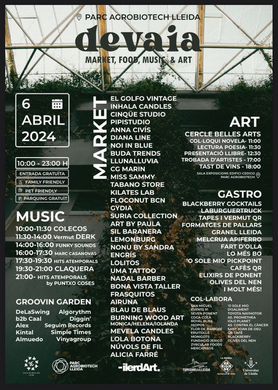 Devaia és un projecte sociocultural impulsat per joves emprenedors que té com a objectiu oferir un espai lúdic per a la promoció del talent de la ciutat de Lleida. On es fusiona la música, l’art, la gastronomia i diferents iniciatives comercials arrelades al territori, on es pretén generar un ecosistema ideal per a la difusió de projectes i idees de la ciutat de Lleida. Un espai lúdic i festiu que vol tenir una cura especial amb les famílies, els infants i els/les joves a qui Devaia ofereix espais i activitats variades. Vermut, música, mercat, art, vins, "tardeo", concerts, gastronomia, i molt més. Un projecte creat a Lleida amb passió i una gran projecció de futur.