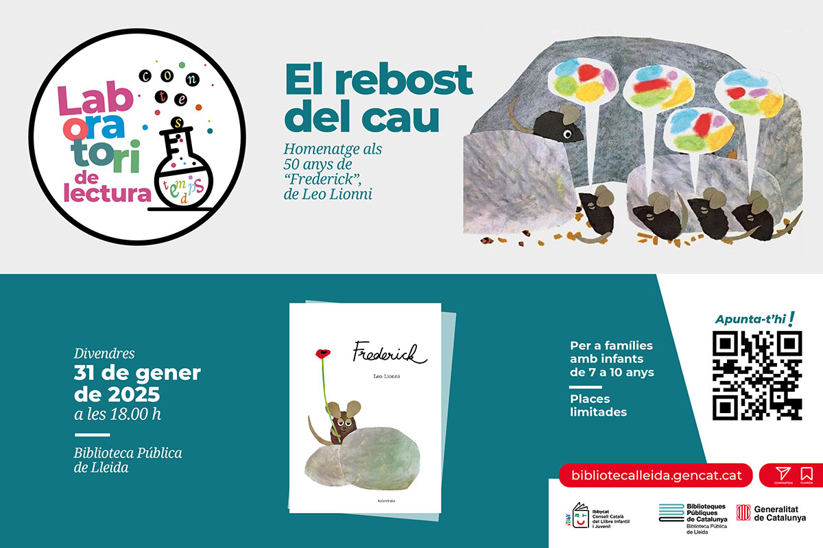 Laboratori en homenatge als 50 anys de la publicació de l’àlbum “Frederick”, de Leo Lionni. Coneixerem històries d’altres ratolins que busquen provisions per al llarg hivern. Cal inscriure’s prèviament a partir del 24 de gener a través del formulari web: https://tuit.cat/7A5Ck. Places limitades.