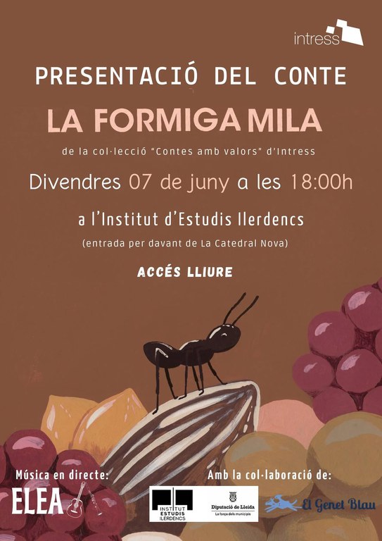 La Formiga Mila és el cinquè títol de la col·lecció “Contes amb valors d’Intress” des de la qual volem acostar a les famílies i infants l’acció social que duem a terme. A través d’aquestes històries hem abordat els acolliments familiars, les violències masclistes, els joves migrants, els treballs en benefici de la comunitat i, amb aquesta última, la salut mental.