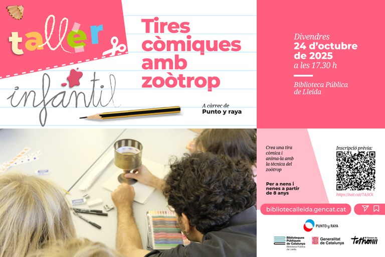 “Tires còmiques amb zoòtrop”. Taller adreçat a infants de 8 a 12 anys a càrrec d’Edgar Díaz Gómez, editor i muntador audiovisual. Ens inspirarem en el personatge de Little Nemo i en les seves tires còmiques per narrar un somni de manera abstracta amb l’antiga tecnologia del zoòtrop. Cada participant crearà dues o tres tires còmiques —una cinta de paper dividida en vinyetes— que, un cop unides, formaran un relat o somni col·lectiu. Utilitzarem l’antiga tecnologia del zoòtrop per animar aquestes tires. Un cop recollides i ordenades, podrem construir un còmic en moviment. Finalment, en digitalitzarem el resultat per crear una breu pel·lícula col·lectiva. Cal inscriure’s prèviament a partir del 14 d’octubre a través del formulari web https://ja.cat/hblgm. Places limitades.