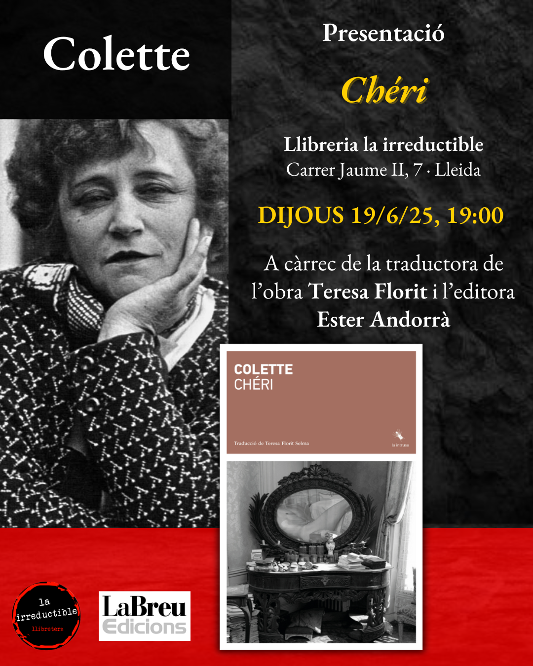 Dijous 19, a les 19:00, presentació del llibre Chéri amb la traductora, Teresa Florit, i l’editora de LaBreu, Ester Andorrà.