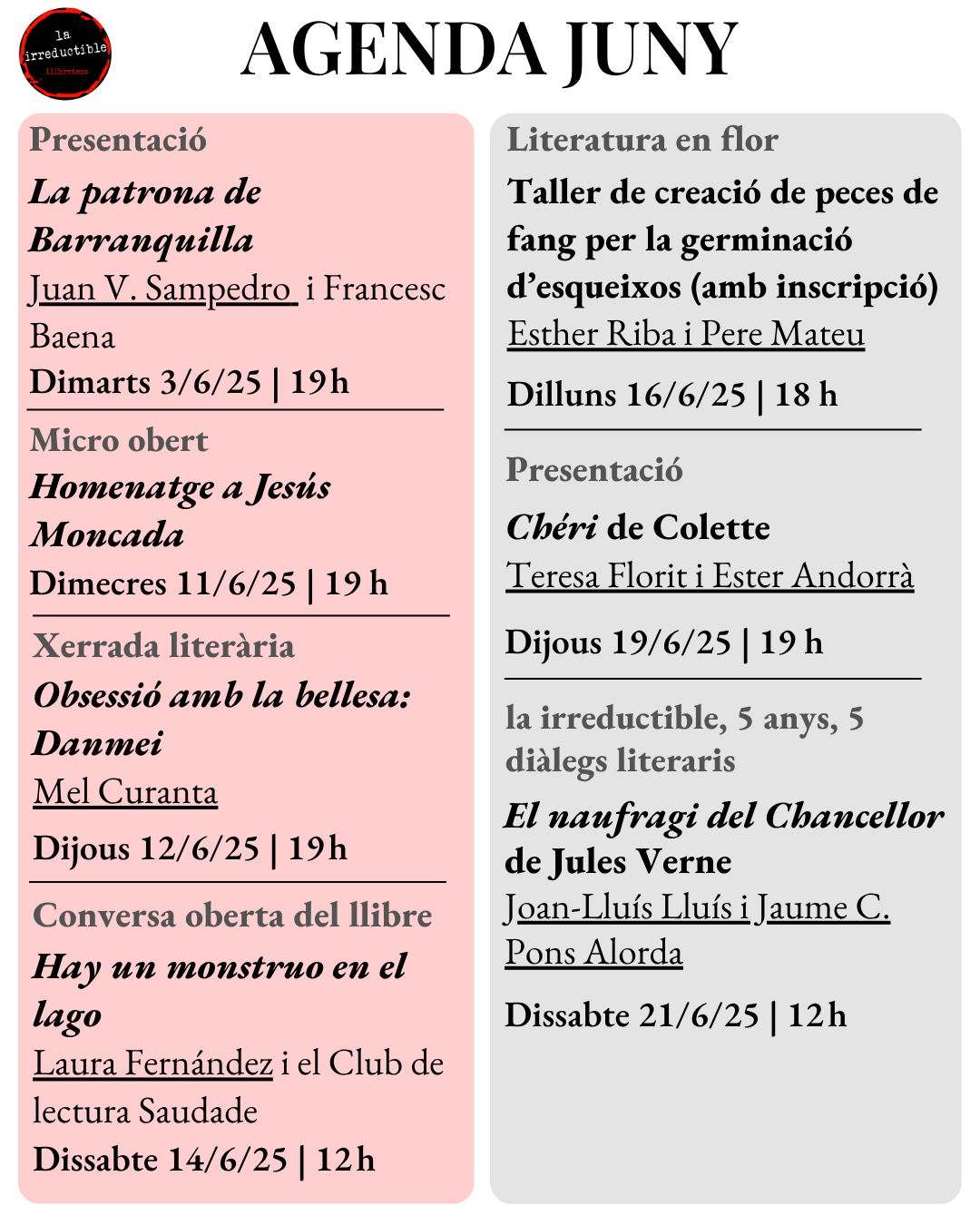 Dijous 12, a les 19:00, xerrada literària «Obsessió amb la bellesa»: Danmei, el gènere literari xinès que ha conquistat el mercat occidental. A càrrec de Mel Curanta, professor de japonès i especialista en literatura asiàtica.