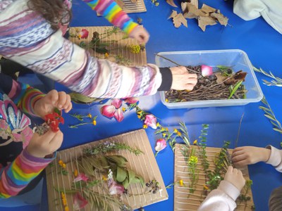 Los niños participantes han creado un relieve con materiales naturales como hojas, piñas y flores. El taller se ha realizado este miércoles, en el marco del día Mundial del Agua